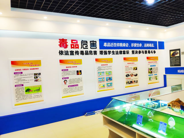 由我公司设计施工的民乐县新天学校禁毒展览馆完美收工,其设计风格和后期施工得到学校领导认可。
